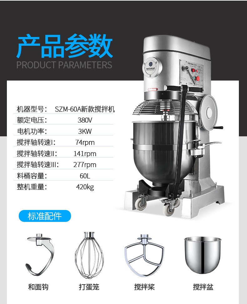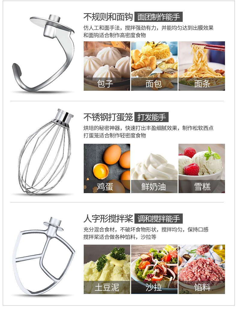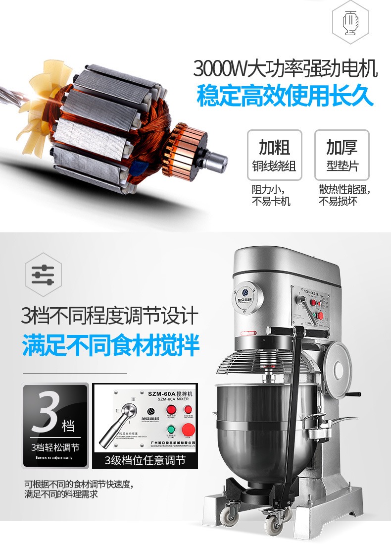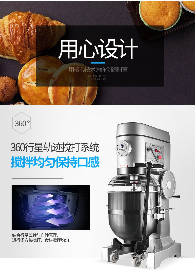 多功能攪拌和麵機,創業神器,開創廚房新時代。多功能高效率,讓您省心省力又省事。360行星軌跡攪打係統,攪拌均勻保持口感。3000W大功率強勁電機,穩定高效使用長久。
