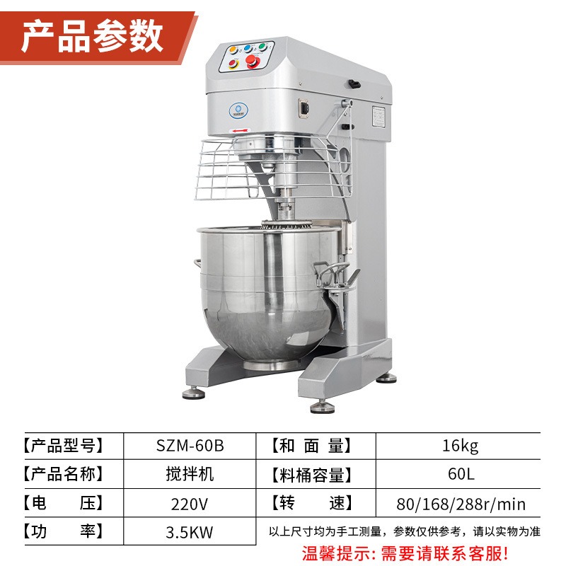 名稱多功能攪拌和麵機 電源220/380V 功率1.1/1.5/4 產量需要請聯係客服 尺寸各型號不同,需要請聯係客服 重量110/150/480 規格20L/30L/80L 其他